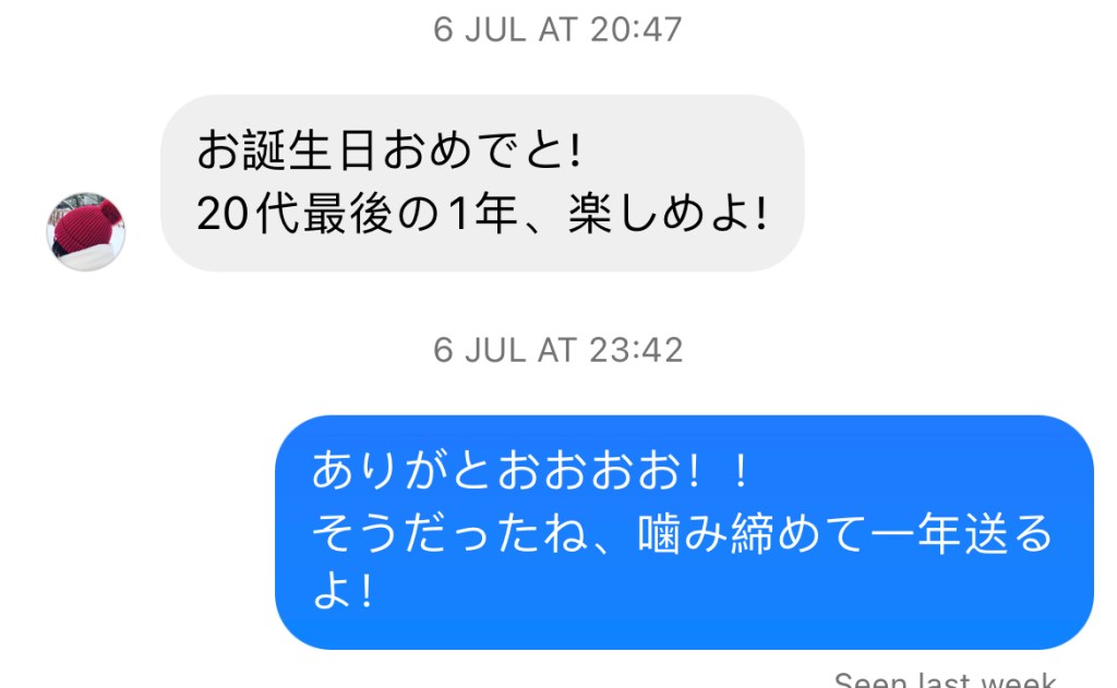 Me: “Thaaaaanks! Oh yeah that’s right! I will savour this year!”