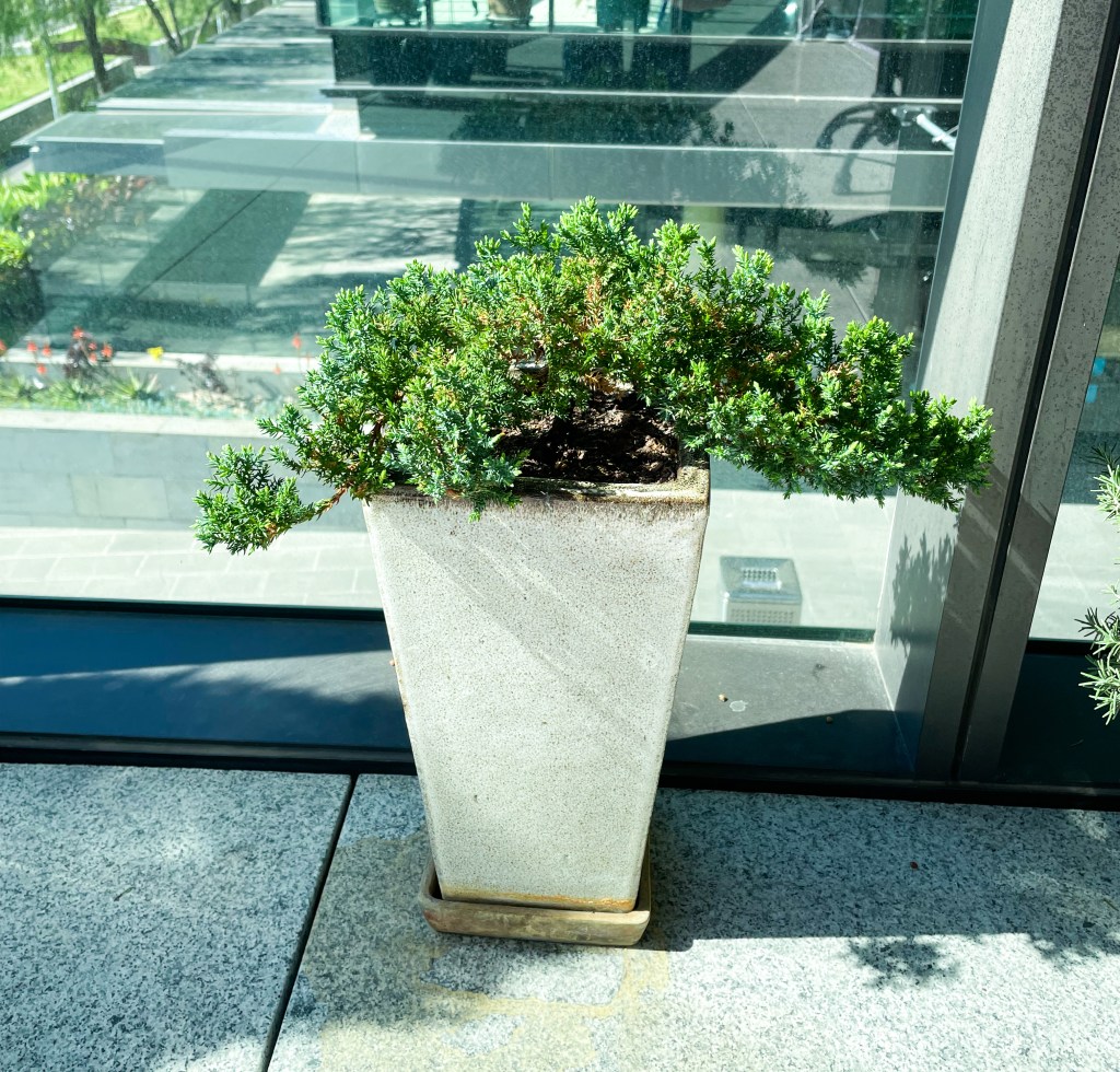 The following is my dad’s bonsai plant. I love its simplistic, rustic textured pot with clean silhouette. The small pine tree is so dearing! As It glows its posture changes gradually. Trimming the branches and leaves for it must feel very “Zen” (禅).